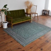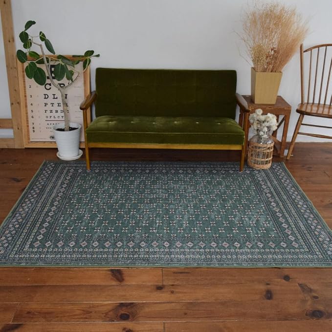 TOCO LIFE おしゃれで洗えるラグマット カーペット ブハラ ヴィンテージ風 4サイズ 1畳 1.5畳 2畳 2.5畳 滑り止め 速乾 床暖可 ホットカーペット対応 (グリーン, 200 200cm) | KAZESHOP