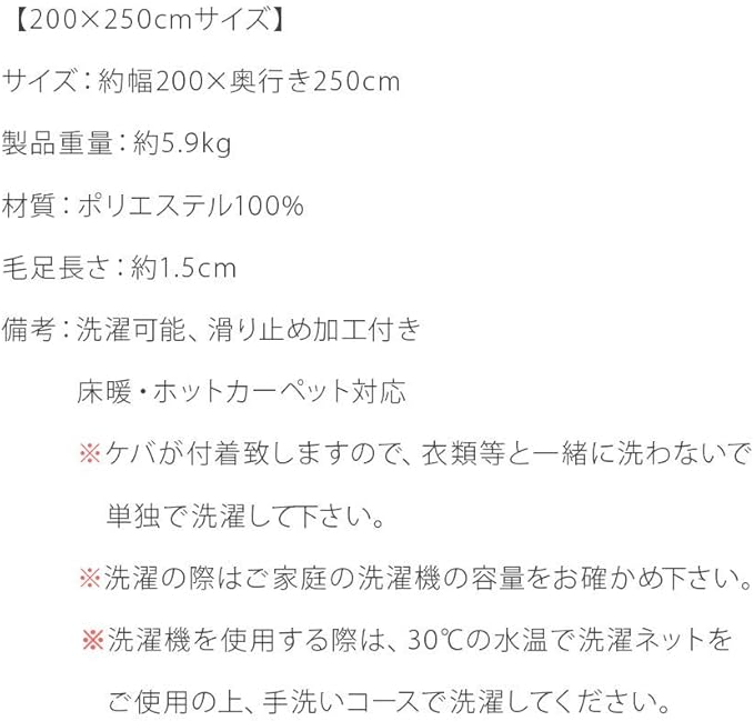 【備考】洗濯可能、滑り止め加工付き、床暖・ホットカーペット対応