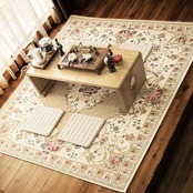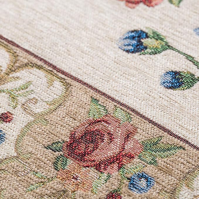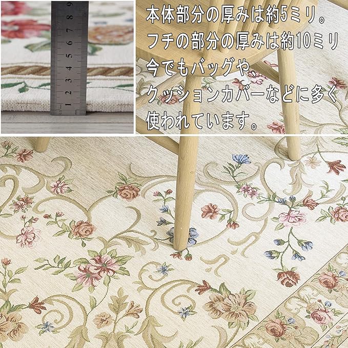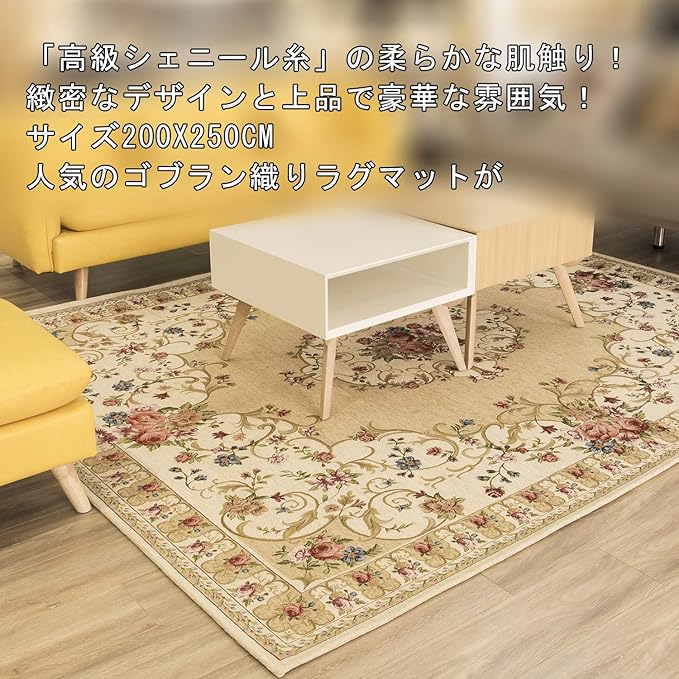 カーペット3畳花柄 ラグ マット洗える - 200 x 250 cm ベージュ 薔薇柄 おしゃれ吸水速乾 抗菌ゴブラン シェニール オールシーズン適用 床暖房対応 掃除易い大きい モダン | KAZESHOP