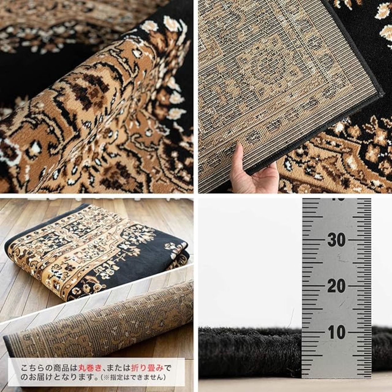 【輸入カーペットを安心してご利用いただくためのお願い】 ●輸入ラグに関して ※同じ商品でも製造ロットの違いによって、サイズや、色味、柄模様の左右が反転していたり、位置がズレている場合がございます。ただし、現地の工場や倉庫での検品をクリアした商品を輸入しています。あらかじめご了承くださいませ。/ ●においに関して ※ご使用当初、裏面に塗られる仕上げの接着塗料(ラテックス剤)のにおいがする場合がございます。人体への影響はありませんが、においに敏感の方や、ご心配の方はご理解の上ご購入お願いいたします。開封後常温のもとで気化(蒸発)するため、においはご使用につれてなくなります。気になる場合は風通しの良いところで陰干ししていただきますと、より早く解消されます。/ ●サイズに関して ※カーペットの製法上、表示サイズより0~3%の誤差がございます。/ ※いずれも商品の初期不良ではございませんので返品・交換は行なっておりません。(※お客様で返品の送料ご負担によるキャンセルは、返品規定に基づきお受けさせていただきます。)/ ※裏面の製品シールは剥がさないでご使用ください。