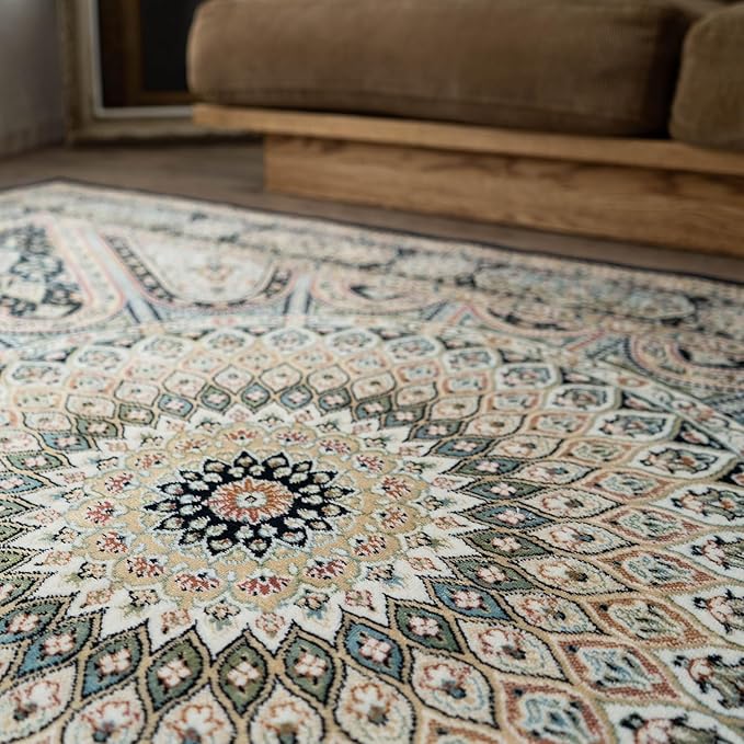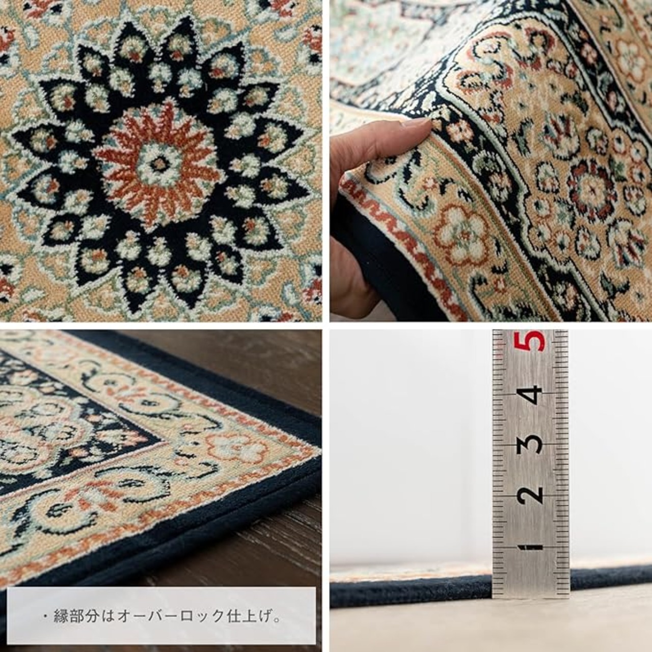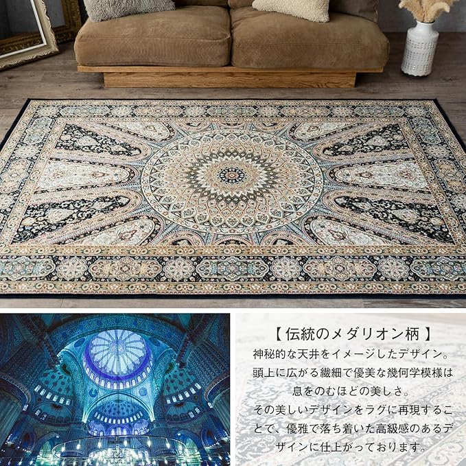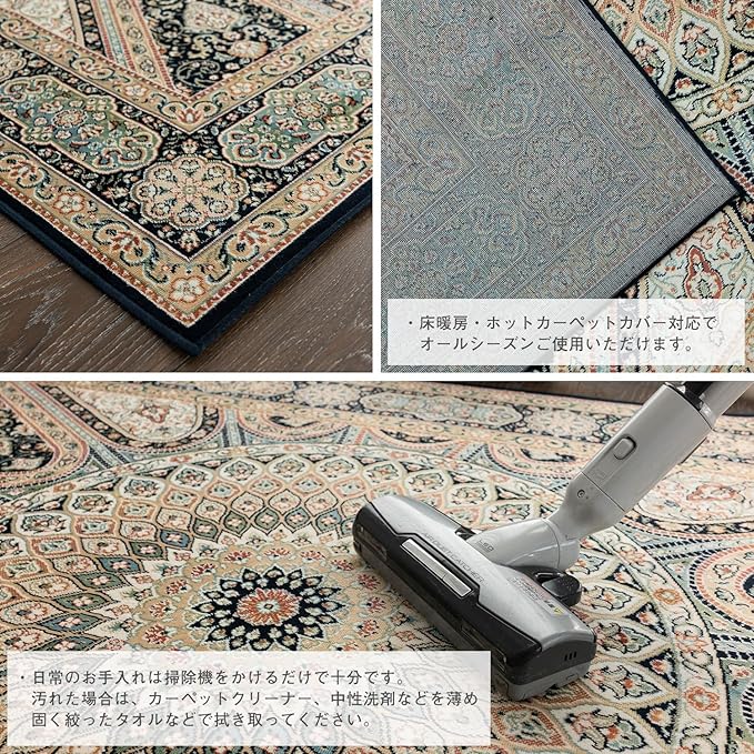 【輸入カーペットを安心してご利用いただくためのお願い】 ●輸入ラグに関して ※同じ商品でも製造ロットの違いによって、サイズや、色味、柄模様の左右が反転していたり、位置がズレている場合がございます。ただし、現地の工場や倉庫での検品をクリアした商品を輸入しています。あらかじめご了承くださいませ。/ ●においに関して ※ご使用当初、裏面に塗られる仕上げの接着塗料(ラテックス剤)のにおいがする場合がございます。人体への影響はありませんが、においに敏感の方や、ご心配の方はご理解の上ご購入お願いいたします。開封後常温のもとで気化(蒸発)するため、においはご使用につれてなくなります。気になる場合は風通しの良いところで陰干ししていただきますと、より早く解消されます。/ ●サイズに関して ※カーペットの製法上、表示サイズより0~3%の誤差がございます。/ ※いずれも商品の初期不良ではございませんので返品・交換は行なっておりません。(※お客様で返品の送料ご負担によるキャンセルは、返品規定に基づきお受けさせていただきます。)