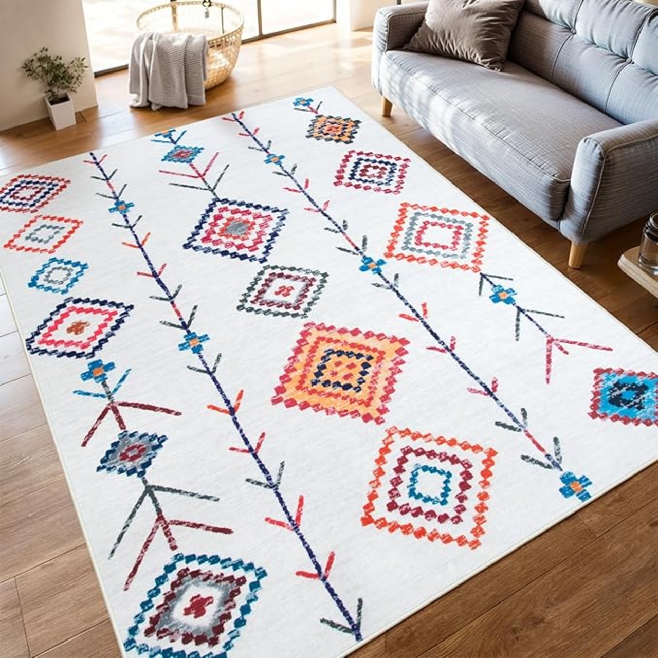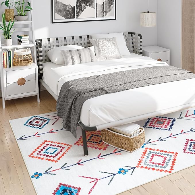 HAOCOO カーペット 3畳 200х250cm ラグ 洗える エスニック風 民族模様 ホットカーペット対応 滑り止め 床保護 防音 リビング シェニール ラグマット オールシーズン適用 抗菌防臭 耐磨耗性 モロッコ ホワイト | KAZESHOP