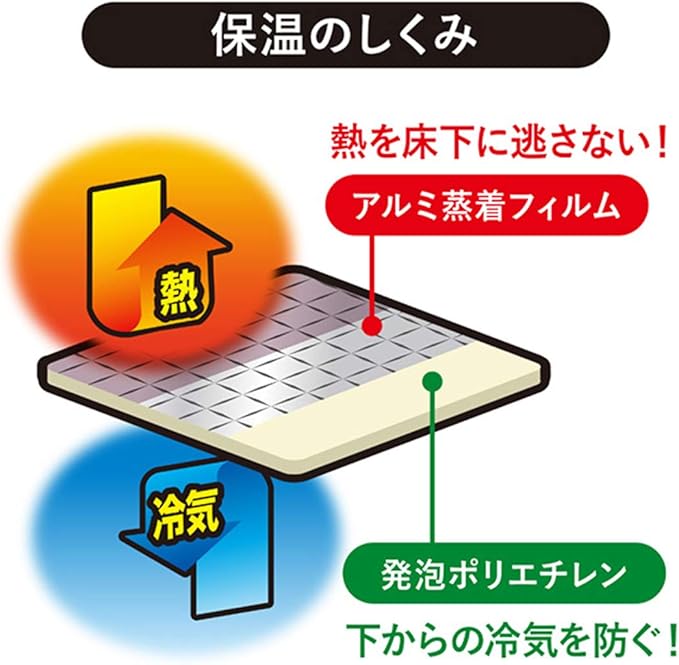 ●さらに断熱効果のある発泡ポリエチレン層(裏面)で、床からの冷気を防ぎ、保温力をアップさせる