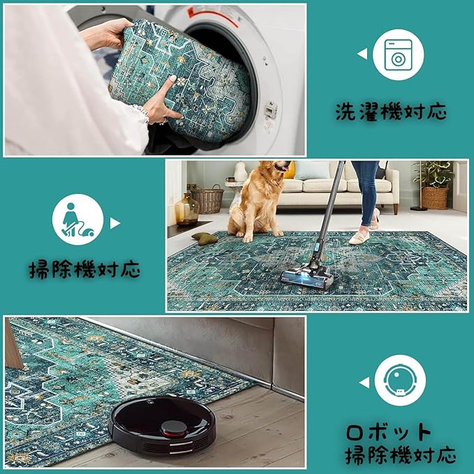 【洗えるラグ】ショートパイル設計でホコリや汚れが付きにくく、日常のお手入れは掃除機やブラッシングで簡単に清潔を保てます。お子様やペットが汚しても、水洗い可能で衛生のカーペット。本洗いの際は冷水洗濯し、漂白剤は使用不可。(※風通しの良い日陰で乾かし、アイロンや乾燥機は避けてください。)