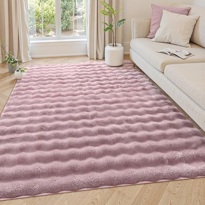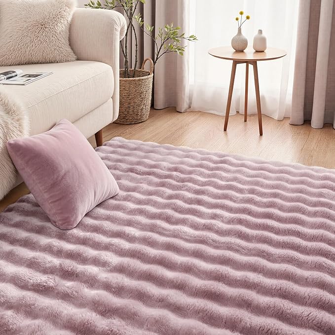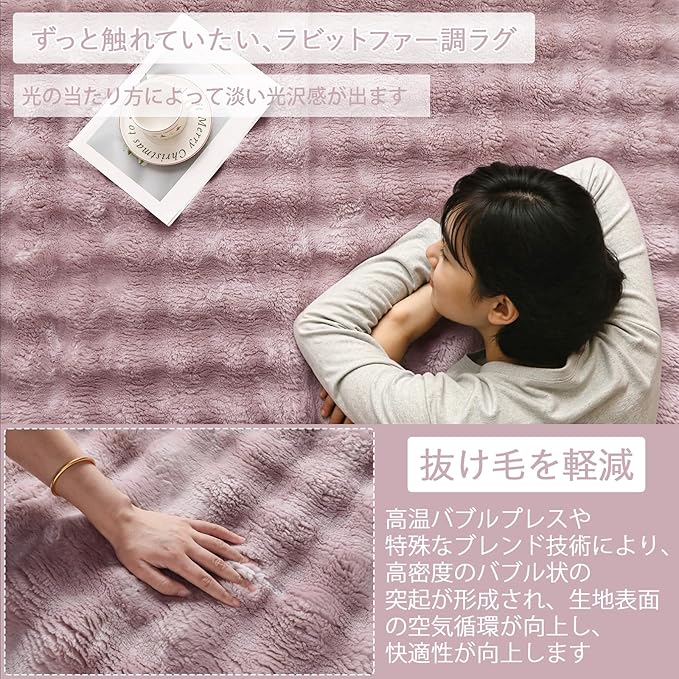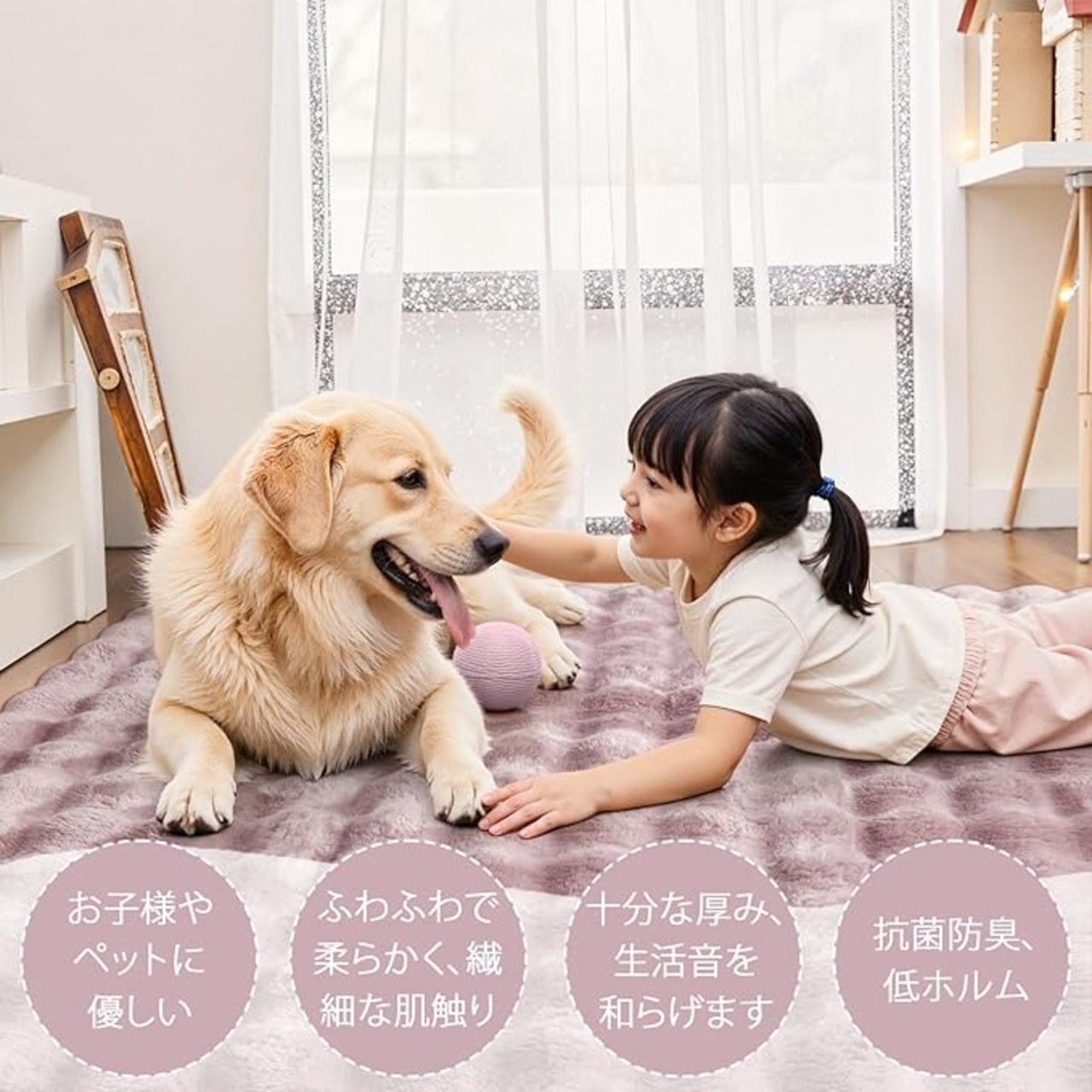 HAOCOO カーペット 約2畳 洗える ラグ 160х200cm ラビットファー調 厚手 シャギー ふわふわ 滑り止め 低反発 オールシーズン適用 北欧風 絨毯 防音 抗菌防臭 リビング ダイニング ラグマット ラベンダーピンク | KAZESHOP