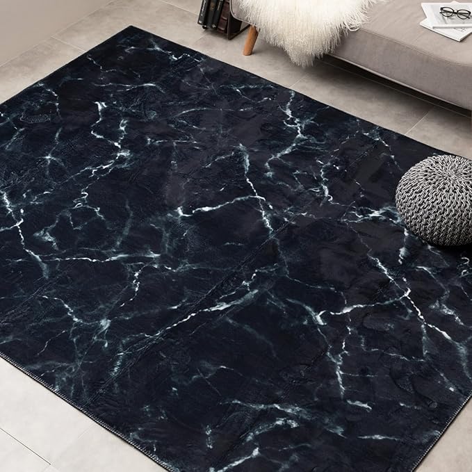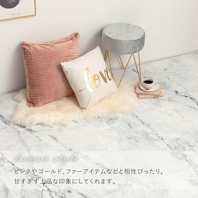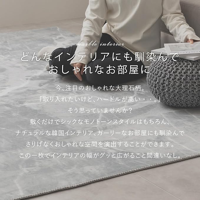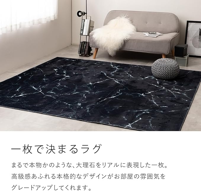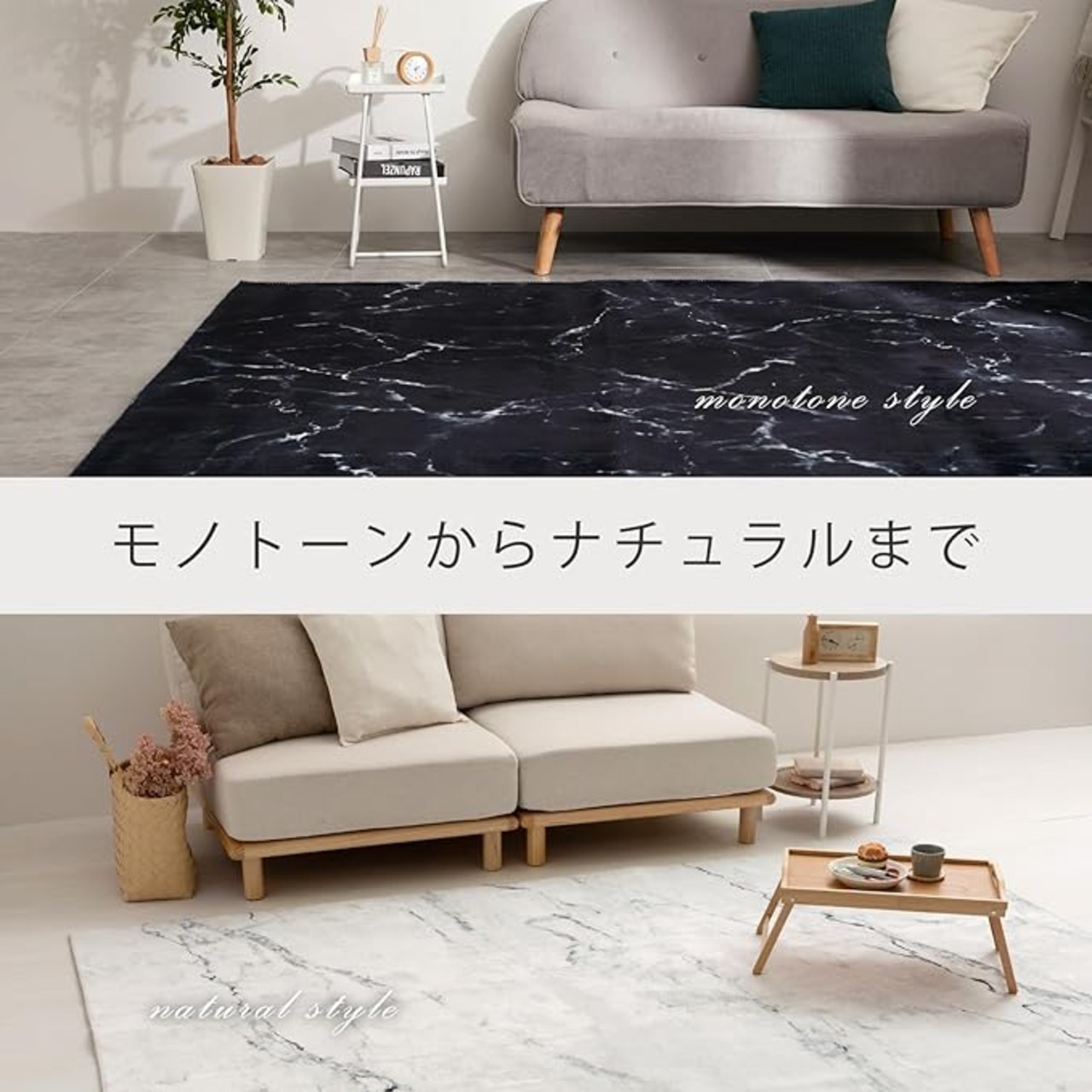 【一枚で雰囲気をグレードアップ】上品で高級感のある大理石柄のプリントラグ。海外風インテリアやホワイトコーデにもあうシックなデザインは、一枚敷くだけでお部屋の雰囲気をグレードアップしてくれます。