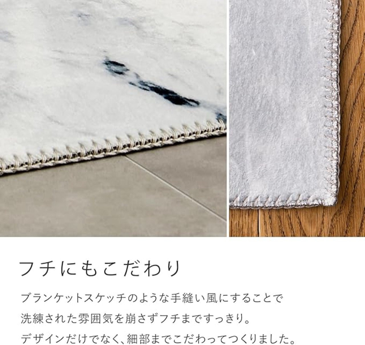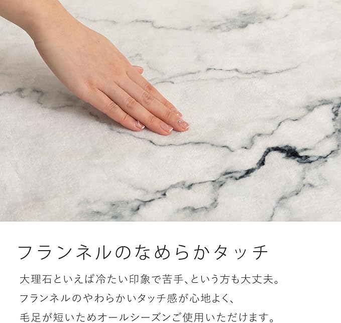 【なめらかタッチ】表面は、フランネル生地を使用しています。ソフトフランネルのなめらかな肌触りは、思わず素肌で触れたくなるようなタッチ感です。毛足が短いので、ゴミや埃が絡まりにくく掃除機掛けもスムーズです。
