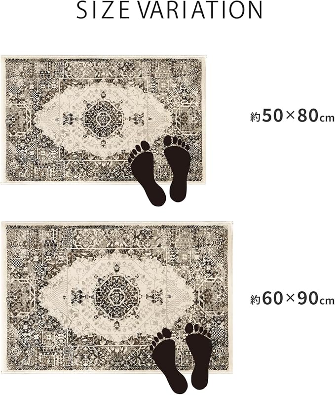 【サイズ】 約60 90cm / 【組成】 表面:ポリプロピレン100% 600,000ノット/平方メートル / 【生産国】 エジプト