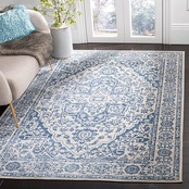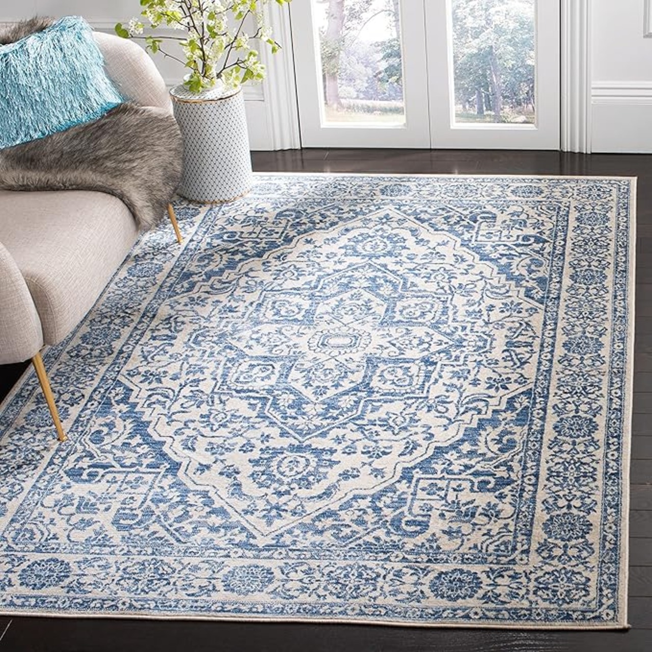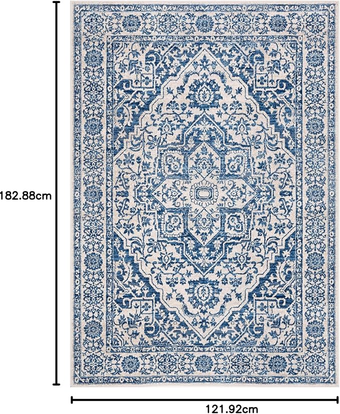 SAFAVIEH (サファビア) Brentwood Collection (ブレントウッドコレクション) アクセントラグ ネイビー/ライトグレー 122 183cm メダリオン ディストレスド加工 毛が抜けないタイプ リビング/ベッドルーム 【日本正規輸入品】ニューヨークブランド BNT832M | KAZESHOP