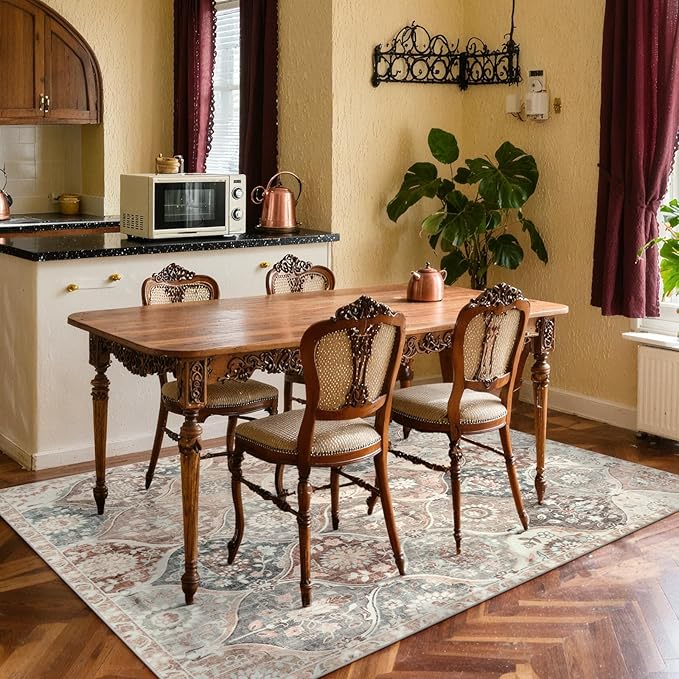 HAOCOO ラグ カーペット 洗える 140 200cm ホットカーペット対応 絨毯 モロッコ柄 ラグマット 1.5畳 ふわふわ ホットカーペット対応 滑り止め 防ダニ 防臭 防音 リビング ダイニングマット アンティーク ペルシャ風 ベージュ | KAZESHOP