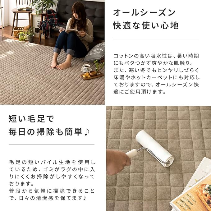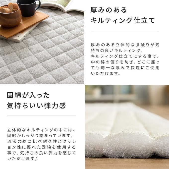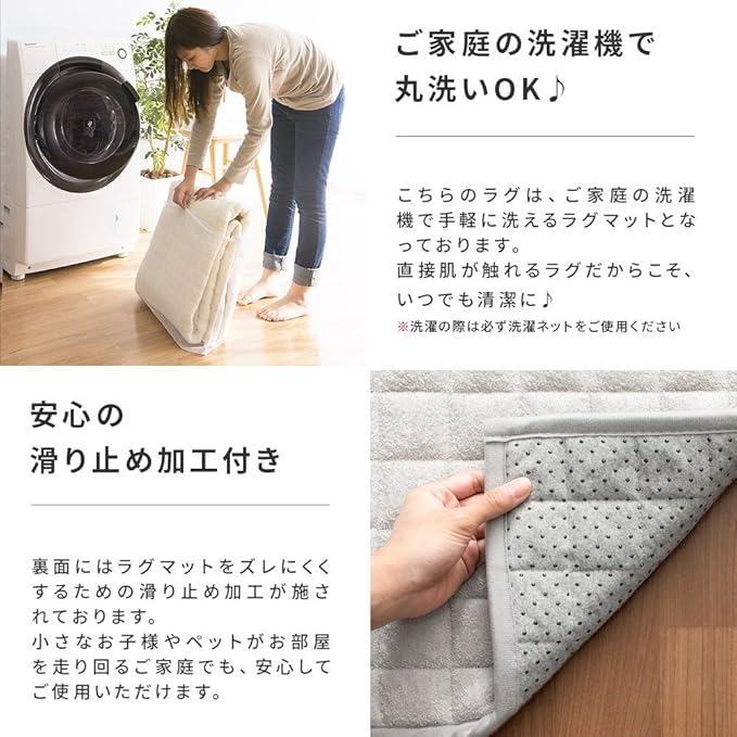洗濯可能、滑り止め加工付き、床暖・ホットカーペット対応。※洗濯機をご使用の際は必ず洗濯ネットをご使用ください。