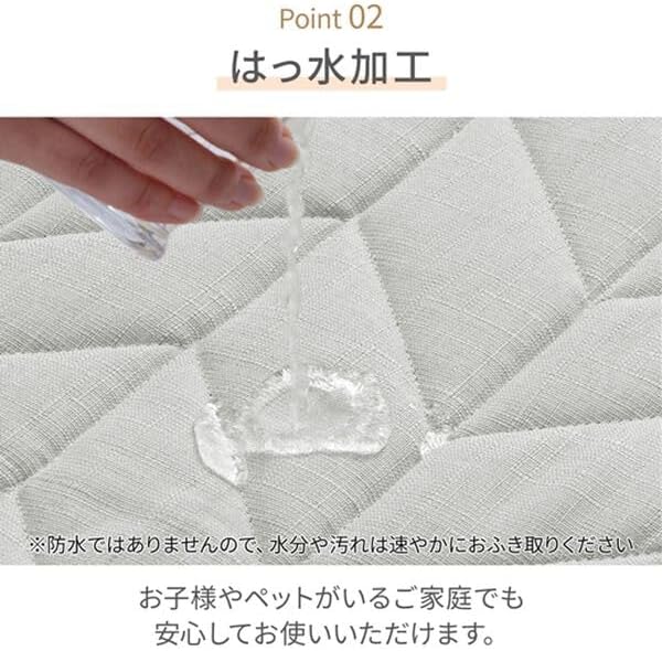【はっ水加工付※】はっ水加工付※なので、こぼしてしまった時に安心。ペットや小さなお子様のいるご家庭でも安心して使用出来ます。※防水ではございませんので、早めにお拭き取り下さい。※はっ水効果は永続的なものではございません。