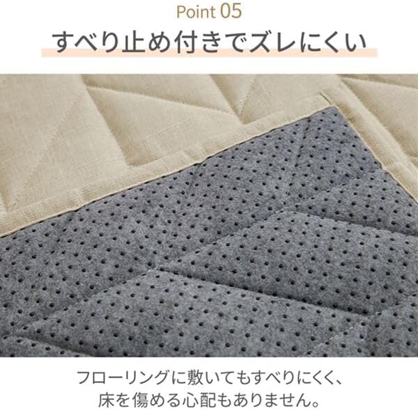 【裏面滑りにくい加工付】裏面に滑り止めが付いているので、フローリングに敷いても滑りにくく、床を傷める心配もありません。