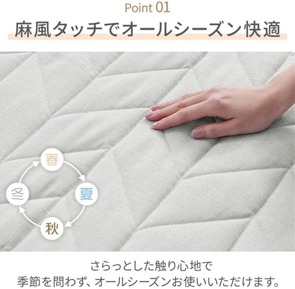 【麻風の生地】表地は、麻風の生地でさらさらした肌ざわり。さらっとした触り心地なので、オールシーズン使えます。