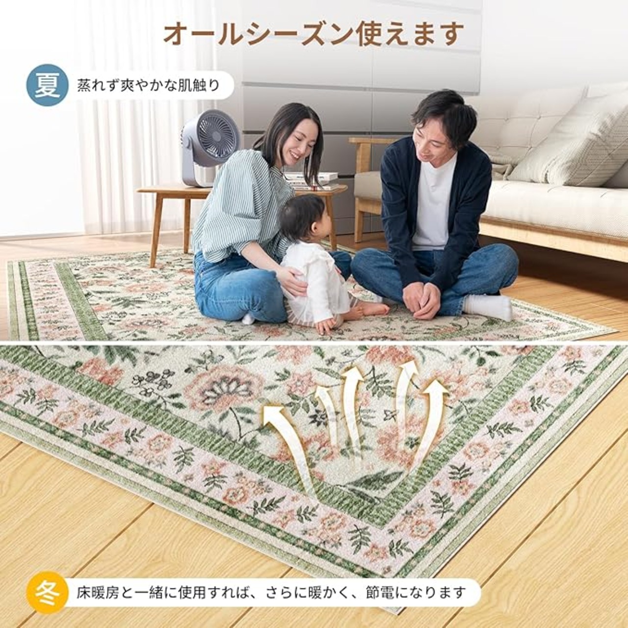 【柔らかな質感】カーペットはファー風コットン素材を使用しており、柔らかく快適です。裏面には滑り止めゴムストリップが設計されており、床により密着します。レトロなテイストがお家の雰囲気と完璧に調和します。実用性と観賞性を兼ね備え、柔らかな肌触りが快適な体験を保証し、どの季節でも使用でき、長持ちします。