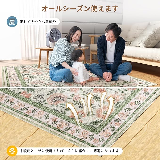 【滑り止め、安心して使用可能】カーペットは超薄型設計で、床に平らに敷くことができ、端がめくれてつまずく心配がありません。同時に、TPRゴム底を使用しており、優れた滑り止め性能を持ち、床にしっかりフィットして移動せず、安心してご使用いただけます。