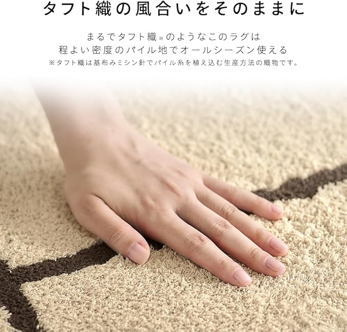 8mmのウレタンが入った、ナチュラルチェックのタフト風ラグです。