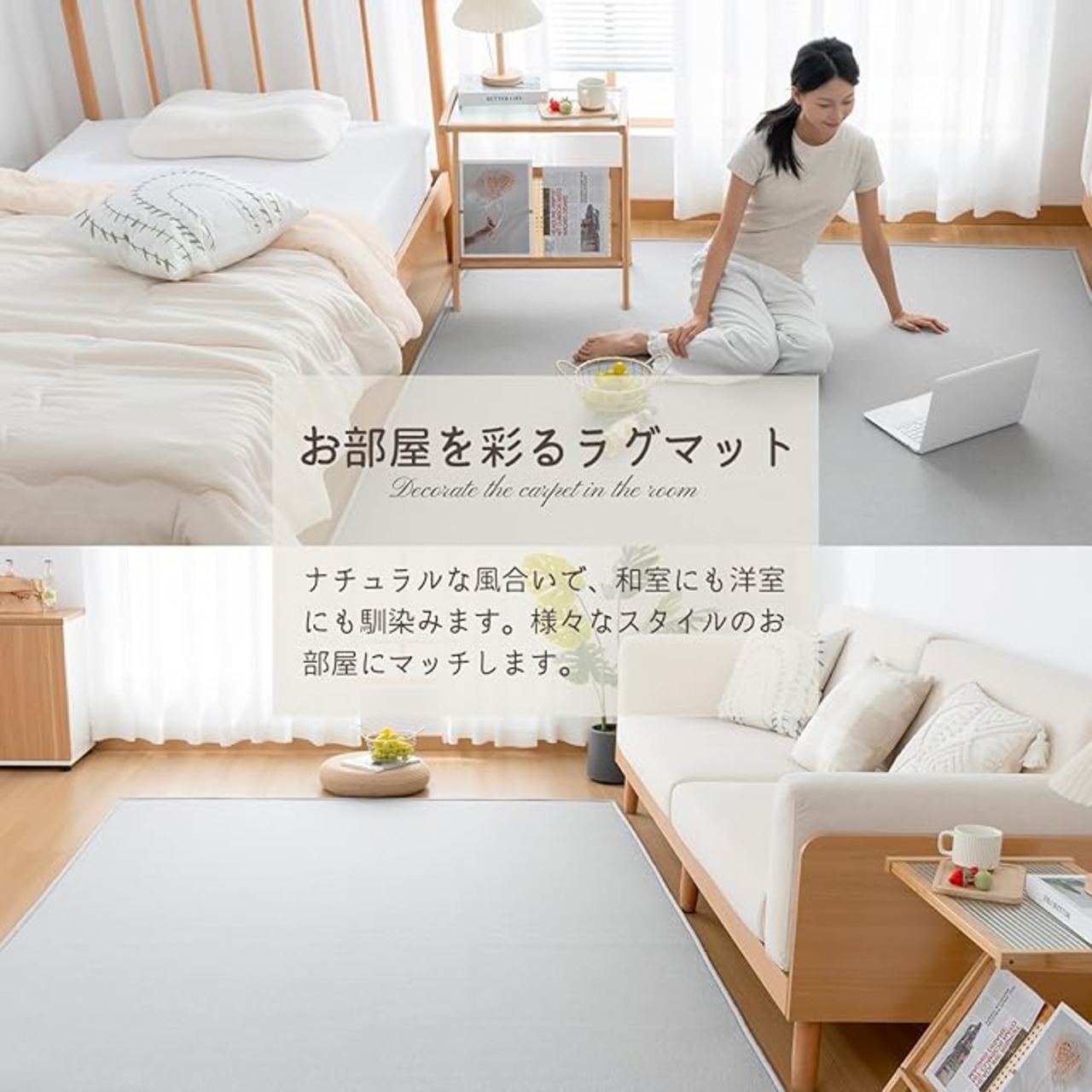 ⭐【新発想!麻風ラグ登場!素材感でおしゃれを】縦と横糸を交互に織り込んで、立体感のある麻っぽい素材感を感じられます。ふっくら、さらさら、心地良いサラふわな手触り。ナチュラルな風合いで、和室にも洋室にも馴染みます。高級感のあるデザインにより、上品な空間を演出する効果もあります。