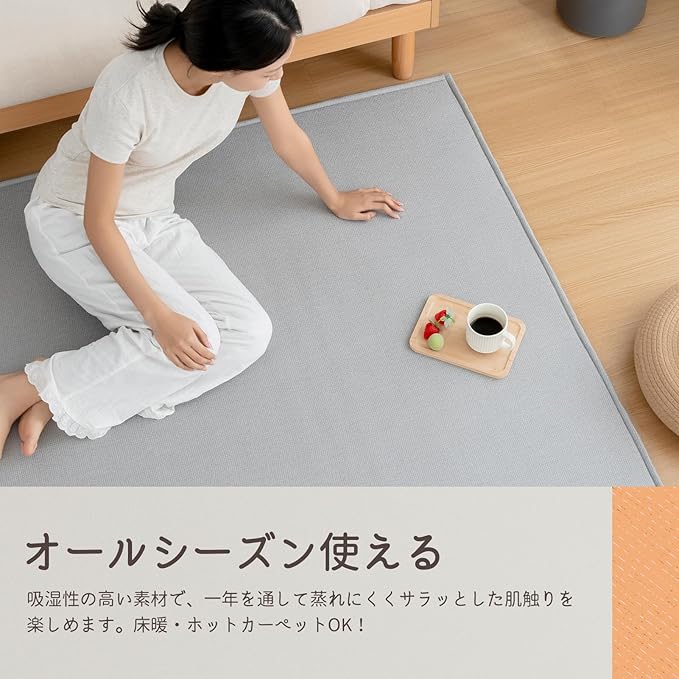 ⭐【オールシーズン使える】吸湿性の高い素材で、一年を通して蒸れにくくサラッとした肌触りを楽しめます。素材の特性上、通気性に優れていて、夏でもべたつきにくく、素足が、心地よい!また、床暖・ホットカーペット対応できます。