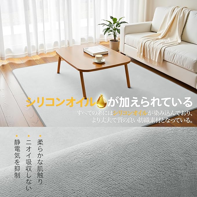 ラグ カーペット ラグマット 絨毯 滑り止め付き 防音 洗えるラグ 防ダニ 防臭 軽量設計 オールシーズン快適に使用 素肌にやさしい 北欧風 おしゃれ ホットカーペット対応 床暖房対応 厚手 抗菌 床保護 転倒を防ぐ 3畳200 250cm ライトグレー | KAZESHOP