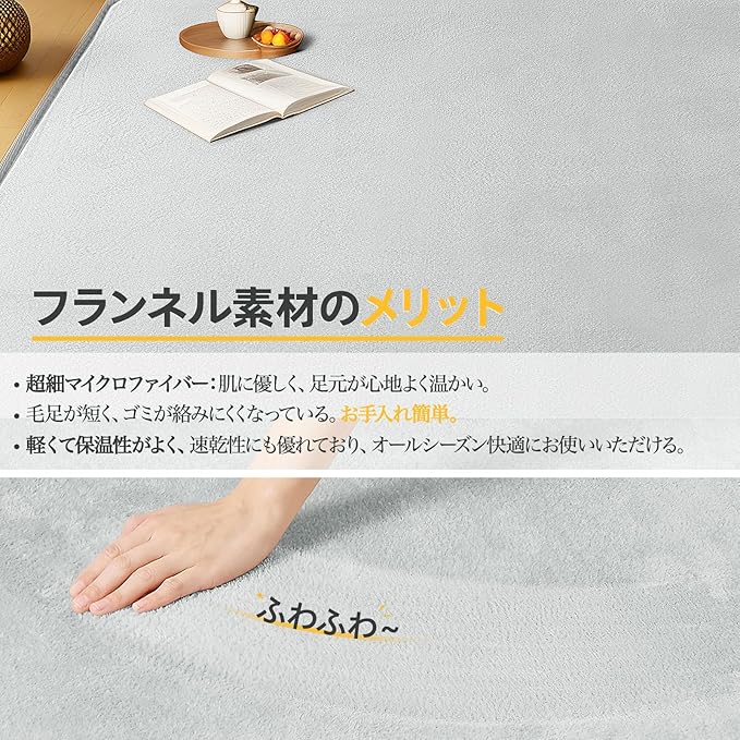 【フランネルラグ-優れた肌触り】極細繊維で作られたフランネル素材のラグマットはソフトでしなやか、滑らかな感触を実現します。肌ざわり良いし、短毛タイプのラグマットなので、ネコや犬の毛が付いても、掃除機で簡単に取れます。
