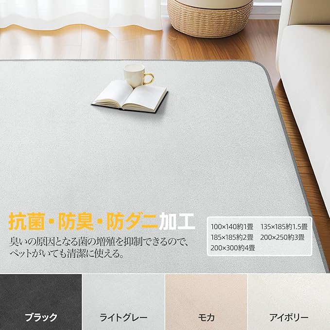 【 安全安心 カーペット 】防ダニ・抗菌・防臭仕様。滑り止めもついてずれにくい ラグ です。フローリングや和室など場所を選ばずに使用できます。