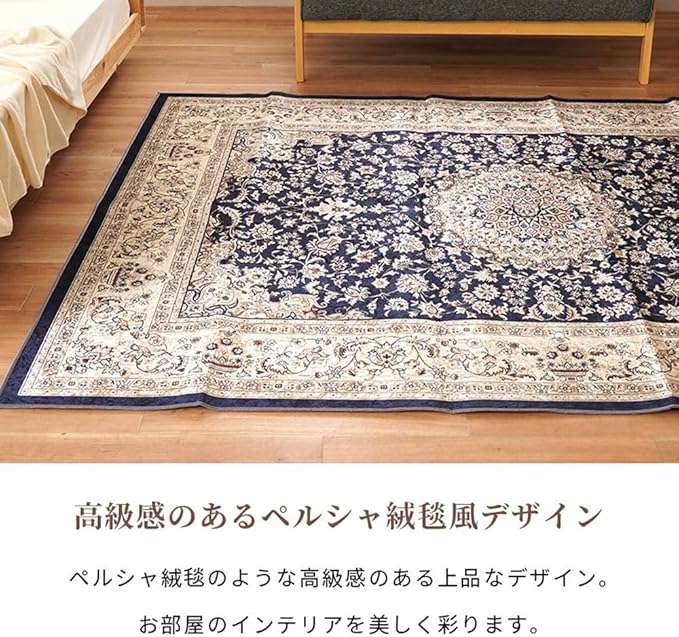 高級感のあるペルシャ絨毯風デザイン、オールシーズン使えるラグマット