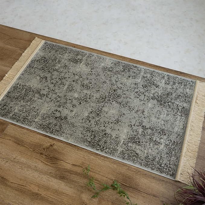 【サイズ】約 95 140 cm (房込み 約 95 155 cm )/ 約1帖 / 長方形【カラー】シルバーグレー