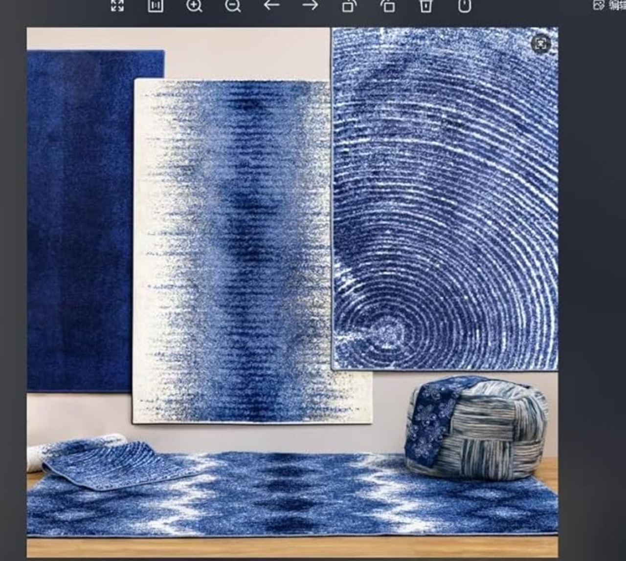藍染風に独特な色合いを表現したインディゴ染の藍染風絨毯「渦潮」です。