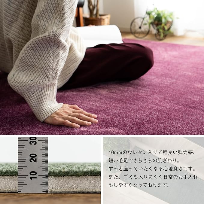 【厚み】ラグ全厚:約13-14ミリ(パイル長:約3ミリ/中材:ウレタン厚み 約10ミリ)【組成】ポリエステル 100 % /縁テープ:細コーデュロイ/中材:ウレタン/裏面:不織布(ドット滑り止め付き)【原産国】中国