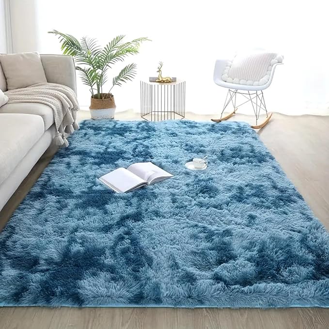 カーペット ラグ 約3畳ラグマット 北欧風 絨毯 じゅうたん ふわふわ carpet ふわっとした手触り 防音 防ダニ オールシーズン ベッドサイド 寝室 リビング ダークブルー 200*250cm | KAZESHOP