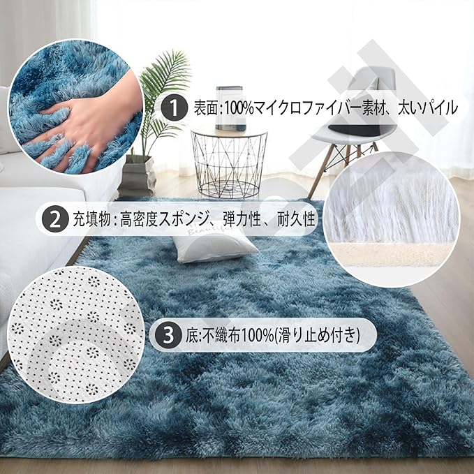 【毛が抜けないカーペット】 ∶当社のカーペットは、高度な機械と洗練された織り技術により、耐久性に優れたマイクロファイバー製で、高品質のポリエステルでできています。 そのため、長期間使用しても毛が抜けたり、色あせすることはありません。ふわふわというよりも、しっとりなめらかな触り心地とゴージャスな見た目が魅力。