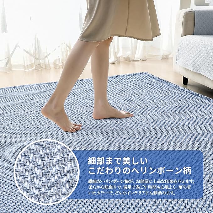 Belinna ラグ カーペット ラグマット ヘリンボーン柄 軽量設計 オールシーズン適用 素肌にやさしい おしゃれ 滑り止め付き 防音 抗菌 防ダニ 防臭 床暖房対応 床保護