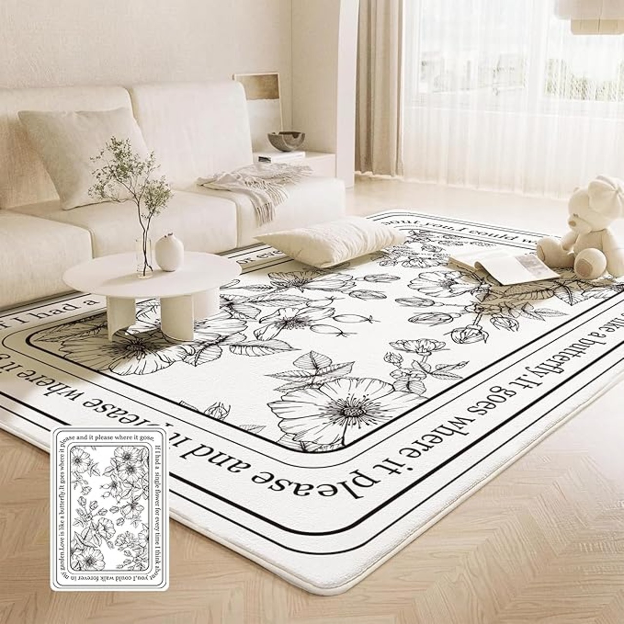 カーペット ラグ 洗える ラグカーペット マット 滑り止め付き 絨毯 1.2畳 防ダニ フランネル さらフワ触感 おしゃれ 北欧 ラグマット carpet living room 居間(花園, 120x160cm) | KAZESHOP