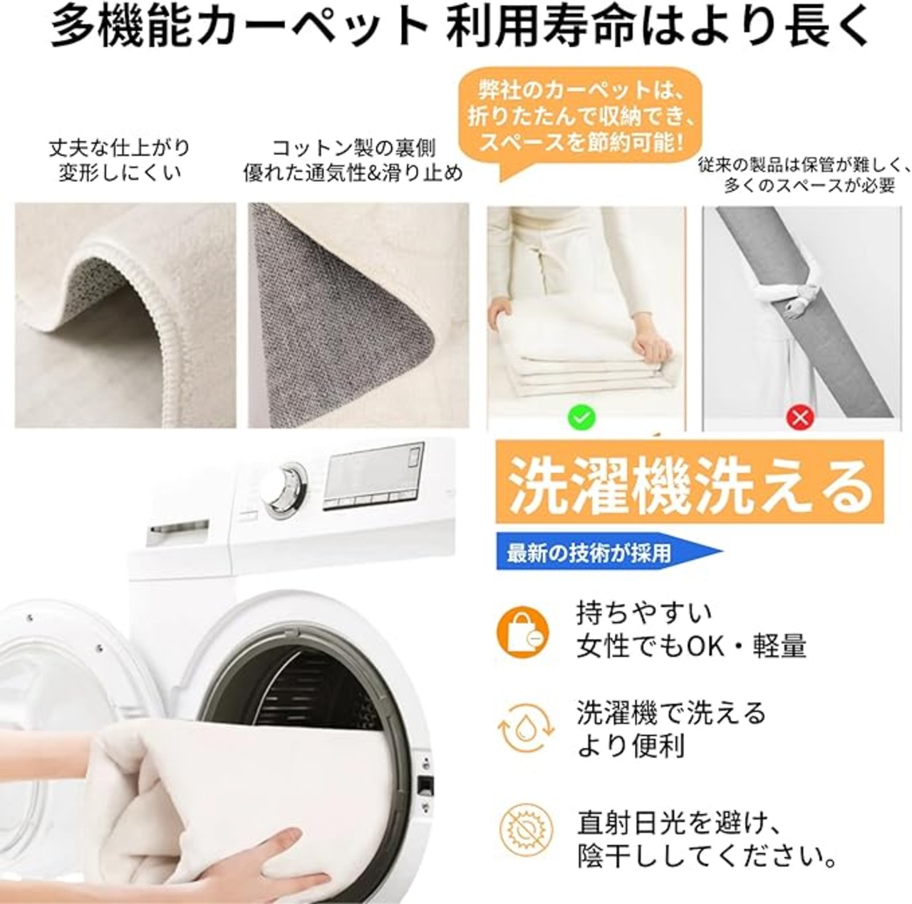 【長方形です洗いOK】使っていると気になる汚れも、ご家庭で丸洗いができます.密度が高くて短めの毛足はゴミが絡みにくく掃除機もかサやすい.※洗濯機洗いする際は洗濯用中性洗剤をご使用の上、必ず洗濯ネットに入れて裏側を内側にして洗ってください.洗濯機に入らない場合は無理に押し込まず、手洗いしてください.※洗濯後は直射日光を避けて風通しの良い所で陰干しをしてください.