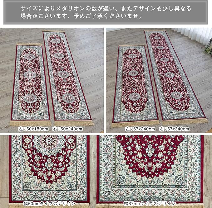 【サイズ】約 50х180 cm( 房込みサイズ 約 50x195 cm ) / ロングタイプ(廊下敷き・キッチンマット) 【カラー】レッド