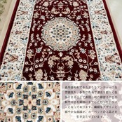 【輸入カーペットを安心してご利用いただくためのお願い】 ●輸入ラグに関して ※同じ商品でも製造ロットの違いによって、サイズや、色味、柄模様の左右が反転していたり、位置がズレている場合がございます。ただし、現地の工場や倉庫での検品をクリアした商品を輸入しています。あらかじめご了承くださいませ。/ ●においに関して ※ご使用当初、裏面に塗られる仕上げの接着塗料(ラテックス剤)のにおいがする場合がございます。人体への影響はありませんが、においに敏感の方や、ご心配の方はご理解の上ご購入お願いいたします。開封後常温のもとで気化(蒸発)するため、においはご使用につれてなくなります。気になる場合は風通しの良いところで陰干ししていただきますと、より早く解消されます。/ ●サイズに関して ※カーペットの製法上、表示サイズより0~3%の誤差がございます。/ ※いずれも商品の初期不良ではございませんので返品・交換は行なっておりません。(※お客様で返品の送料ご負担によるキャンセルは、返品規定に基づきお受けさせていただきます。)/ ※裏面の製品シールは剥がさないでご使用ください。