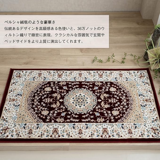 【サイズ】約 60 90 cm / 玄関マット 【カラー】ワイン