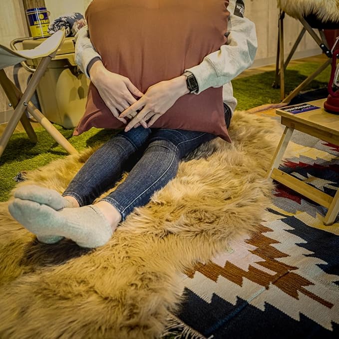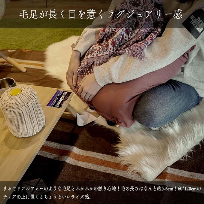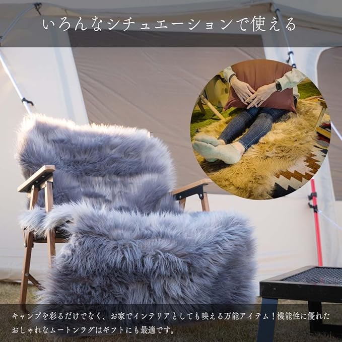 【ふわふわでかわいいムートン風ラグ】 この商品は、ふわふわでかわいいムートン風ラグマットです。どんな場所に置いても存在感を発揮し、インテリアをより華やかに彩ってくれます。キャンプやグランピングでも、おしゃれで快適な空間を演出できます。