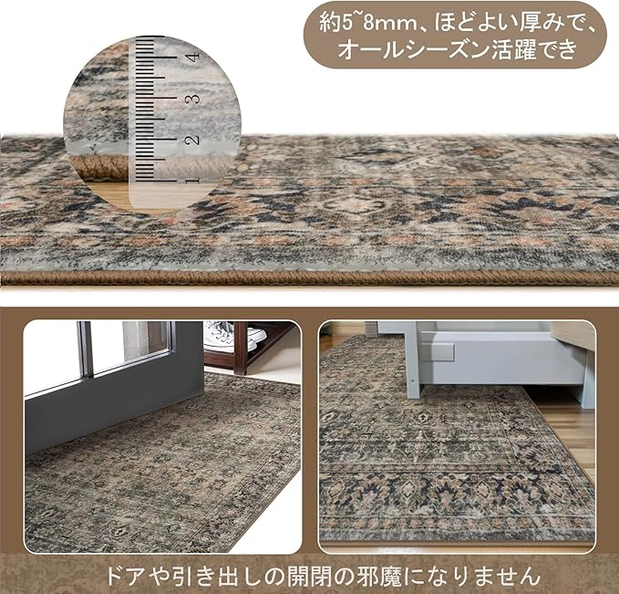 HAOCOO ラグ 洗える 90 150cm オールシーズン適用 ペルシャ風 ラグマット 1畳 ふわふわ おしゃれ 滑り止め ホットカーペット対応 防ダニ 防臭 軽量 防音マット リビング 寝室 チェアマット アンティーク 花柄 | KAZESHOP