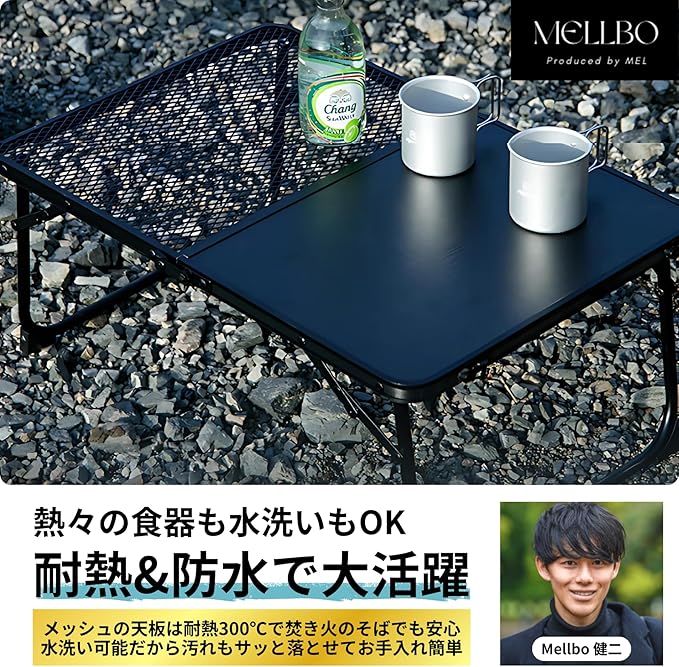 ✅ 【耐久性とデザインを両立】メッシュとフラットの2 in 1天板を採用したこのテーブルは、スタイリッシュさと機能性を兼ね備えています。耐熱温度300℃のメッシュ天板は、鍋やフライパンを安心して置けるほか、おしゃれなデザインでキャンプサイトを華やかに彩ります。他のテーブルとは異なり、使用後も水洗いできるのでお手入れも簡単です。