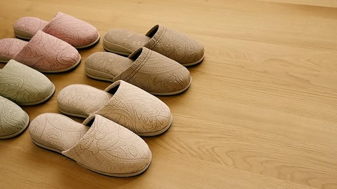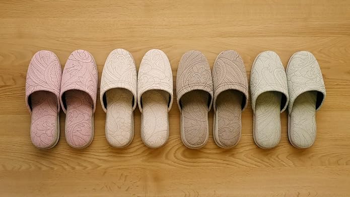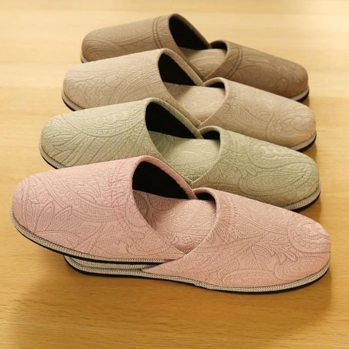 来客用スリッパ4足セット-4色カラーが違うのでお客様用として色分けができます。おしゃれなペイズリー柄がすてきなスリッパです。