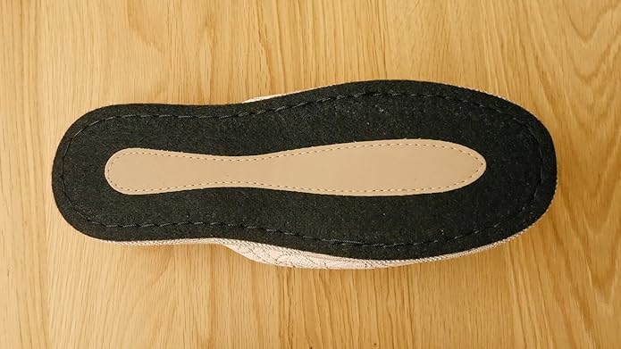 素材:ポリエステル(スリッパ甲&ソール部分)、フェルト(底面)/底面がフェルト底なのでパタパタした音がしにくく、フローリングを傷つけにくくなっています。