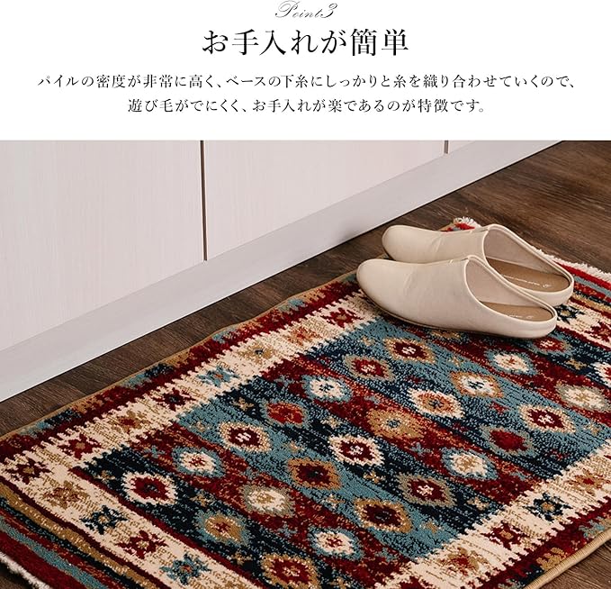 イケヒコ 玄関 選べる マット 長方形 単品 プルメリア レッド 約60 90cm 厚み 約11mm モルドバ製 へたりにくい 耐久性 弾力性 抗菌防臭 消臭 キリム柄 エレガント 洗濯不可 おしゃれ ふわふわ #1311330241801 | KAZESHOP