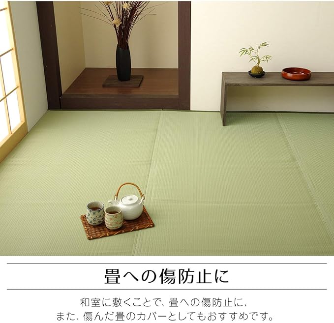 【丈夫で強度が高い】ポリプロピレン素材を細いパイプ状にして織り込んだ敷物で、強度が高くしっかりとしています。引っ掻き傷にも強いので、ペットとの快適な暮らしに適しています。畳や床の保護目的で畳の上に敷くマット、フローリングマットとしてご使用いただけます。