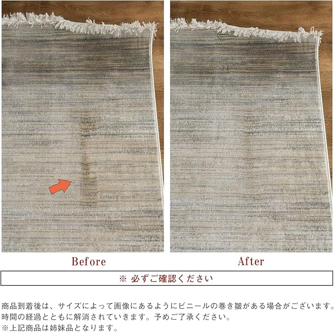 【輸入カーペットを安心してご利用いただくためのお願い】 ●輸入ラグに関して ※同じ商品でも製造ロットの違いによって、サイズや、色味、柄模様の左右が反転していたり、位置がズレている場合がございます。ただし、現地の工場や倉庫での検品をクリアした商品を輸入しています。あらかじめご了承くださいませ。/ ●においに関して ※ご使用当初、裏面に塗られる仕上げの接着塗料(ラテックス剤)のにおいがする場合がございます。人体への影響はありませんが、においに敏感の方や、ご心配の方はご理解の上ご購入お願いいたします。開封後常温のもとで気化(蒸発)するため、においはご使用につれてなくなります。気になる場合は風通しの良いところで陰干ししていただきますと、より早く解消されます。/ ●サイズに関して ※カーペットの製法上、表示サイズより0~3%の誤差がございます。/ ※いずれも商品の初期不良ではございませんので返品・交換は行なっておりません。(※お客様で返品の送料ご負担によるキャンセルは、返品規定に基づきお受けさせていただきます。)/ ※裏面の製品シールは剥がさないでご使用ください。