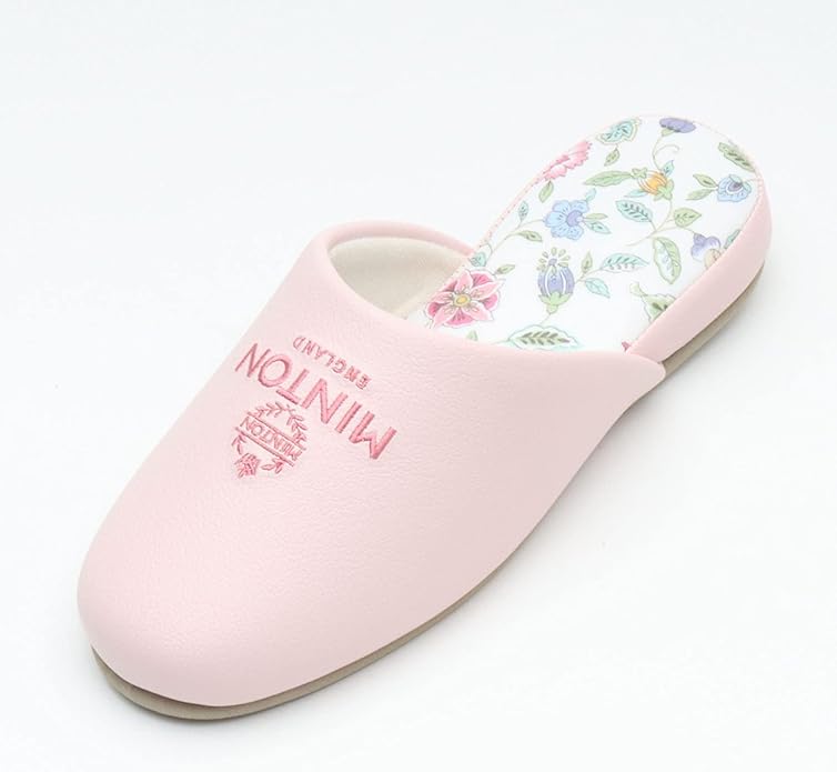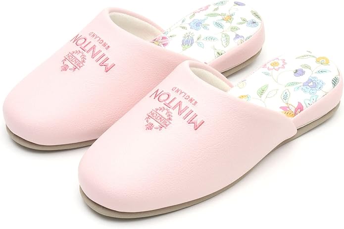 ミントン永遠の定番「ハドンホール」柄を中敷きに使用した吊り込みスリッパ。汚れやすい中敷きはビニールコーティングしてあるので、汚れを寄せ付けず、美しい花柄をキープします。甲部分の素材もPVC素材なので、中敷き同様汚れにくくなっています。華やかなパステルカラーとハドンホール柄で来客用のスリッパとしてオススメです。汚れにくいのでちょっと贅沢なトイレスリッパにもオススメします。