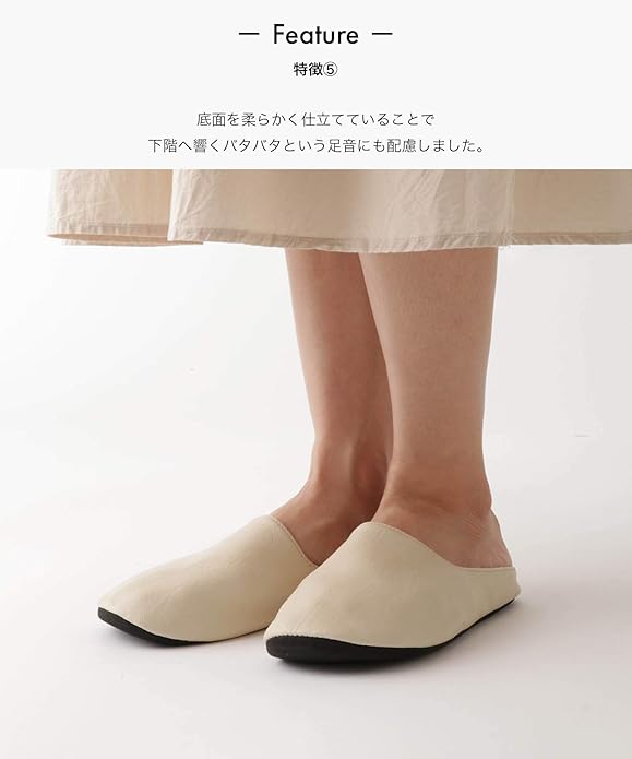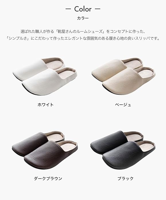 選ばれた職人が作る「靴屋さんのルームシューズ」をコンセプトに作った、「シンプルさ」にこだわって作ったエレガントな雰囲気のある履き心地の良いスリッパ。