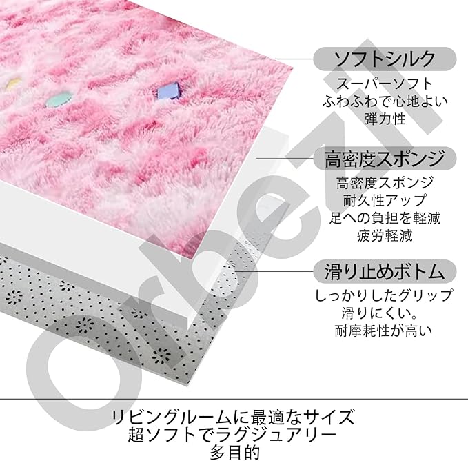 【ふわふわ柔らかな肌触り】快適でふわふわしたメモリーフォームのカーペットは柔らかい感触を提供し、柔らかさと快適さを楽しむことができます。カーペットの中材には、約6mm厚の低反発ウレタンフォームを使用しており、一般的なカーペットよりも厚みがあり、より柔らかく、優れたクッション性を実現しています。硬質の床材の上に敷いても、長時間座ったり寝転がったりしても、身体への負担が少ないのが特徴です。また、優れた防音性も備えているため、賃貸マンションや下階への騒音を気にされる方にも最適です。