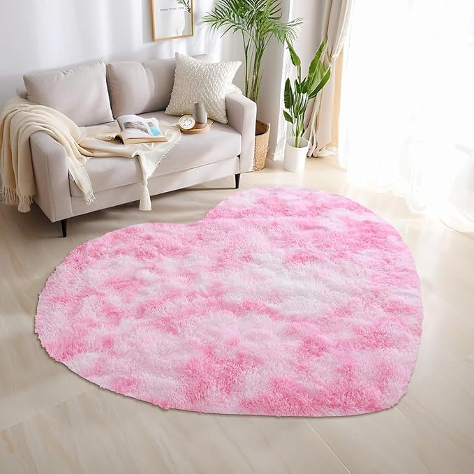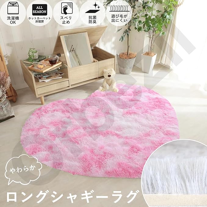 ラグ ハート ピンク かわいい ラグマット じゅうたん カーペット 北欧風 子供部屋 女の子メモリーフォーム ふわふわ 防音 防ダニ オールシーズン 寝室、リビング ピンクに染める120*160cm | KAZESHOP